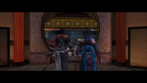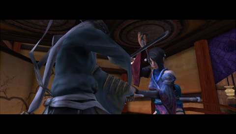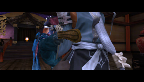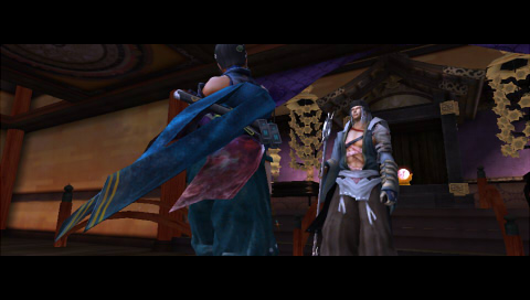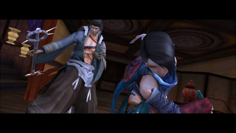ゼンに向けて振り下ろされたシュウの錫杖を、楓が刀で受け止める。